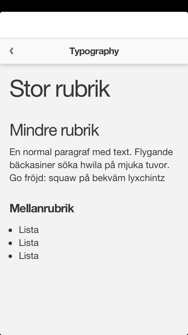 There are several useful page elements included in the front end framework. These can be used to quickly build out a service. It's either the actual html element, or you can set a class name to add specific behaviour and/or layout.